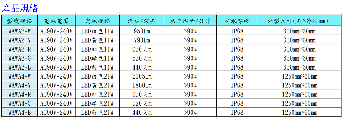 產品特色1.不易光衰,使用時效長(約一般傳統燈源10倍以上).2.低秏電量,發光效率高,可節省電力. 3.可營造成光影現象,讓水族呈現出最佳天然美感.4.光源具方向性,欣賞水族箱時,不易造成光害.5.水中照射,植物更能吸收行光合作用. 6.環保無汞,減少CO2排放,符合國際潮流.